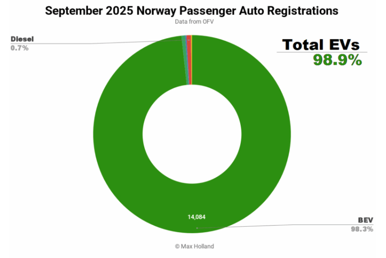 9月の新車販売は98.3%が電気自動車という結果になっています。