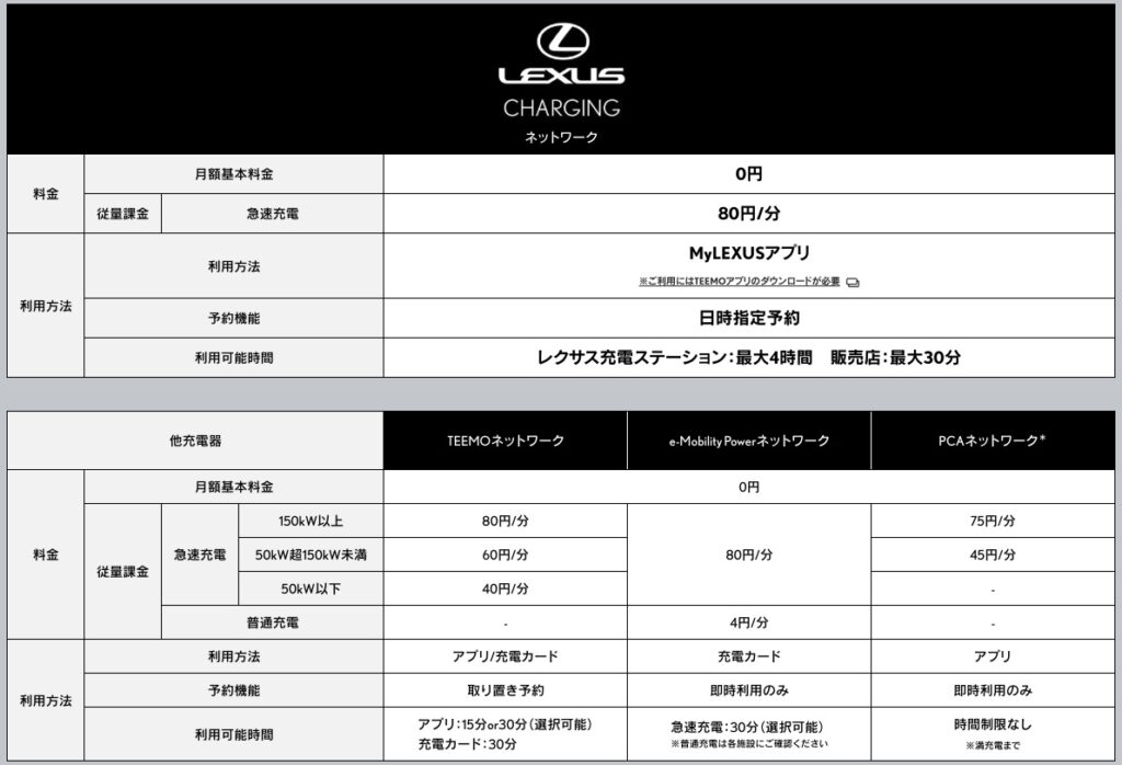 PCAユーザーはあえてレクサスチャージングを使う理由って本当に内容に思います。