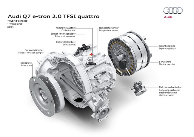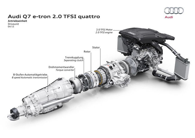 2.0TFSIで252ps・370Nmに電気モーター128ps・350Nmが追加されて8速Tiptronicの組み合わせ。