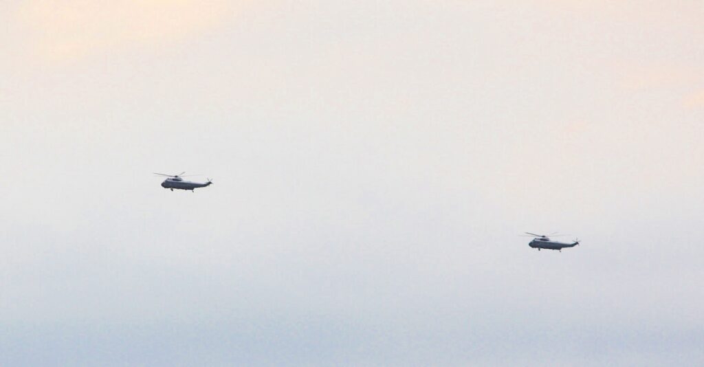 首相と大統領が乗ったマリーン1が飛んで行きました。